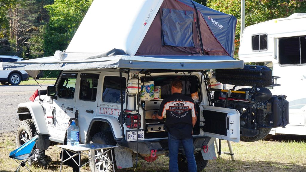 Les exposants présents pour ce premier rendez-vous étaient tous liés de plus ou moins à l’overland. Il y avait des exposants qui offraient des produits liés à la motorisation, d’esthétique, de système de panneaux solaires. Aussi sur place, d’autres kiosques liés à l’overland dont un commerçant d’équipement auxiliaire, un importateur de véhicules JDM et ainsi qu’un exposant qui offre des voyages préorganisés en Afrique. Il y avait aussi la présence remarquée de 2 joueurs significatifs dans le domaine de l’overland au Québec en la présence d’un fabricant renommé de remorques d’expédition ainsi que d’équipement connexe et un commanditaire majeur qui offre désormais des tentes de toit en aluminium.