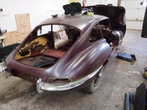 On peut aussi voir un projet avec moins de capacités hors-route mais tout aussi impressionnant, et surtout très rare, une jaguar E-Type 1967 . Normalement VAT ne fait que des véhicules de types militaires. Mais après avoir fait la restauration d’un Defender pour un client, ce dernier a tellement aimé leur travail qu’il a beaucoup insister pour que l’équipe de VAT s’occupe de ce petit bijoux. Et un projet aussi rare … ils n’ont pas pu refusé.