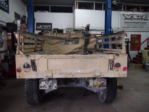 Parlant de professionnel, je vous présente aujourd’hui un super projet. La restauration complète d’un Humvee qui était au Canada afin de servir de véhicule de mines (pas des mines explosives militaires mais bien des exploitations minières). Pas besoin de vous dire qu’après avoir travaillé dans de telles conditions, le véhicule était en piteux état. Mais en fait la grande majorités des commandes qui entrent chez VAT sont de grand défis .