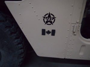 Une fois le gros des travaux mécaniques complété, on tombe dans le body et la peinture. VAT on choisi une peinture TAN CARC avec des attributs en niveau de camouflage thermal, la même utilisé par les Forces Armées Canadiennes. Le véhicule étant en sol canadien l’équipe a voulu respecter le thème en choisissant des couleurs militaires canadiennes.