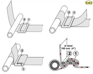Notez que l’exedent de courroie doit avoir un minimum de 100mm ( 4 pouces) de long.