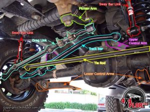 En général ce qui peut causer ce problème peut être le desserrage d’une composante de la conduite ou de la suspension, le bris d’une de celle ci, ou même la mauvaise installation d’un ensemble de sur levage (lift kit). Il faut diriger nos recherches sur certaines composantes susceptibles de causer le problème.