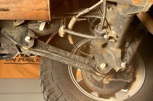 Petit indice facile, les balljoints sont souvent muni d’un soufflet en caoutchouc. Un signe facile de dommage est la perforation de celui-ci et ou la perte de graisse . Les balljoints d’origine ne sont souvent pas muni de zerk pour les graisser, il se peut donc qu’avec l’ajout de gros pneus et d’un usage un peu abusif, il est chauffé ou usé prématurément.