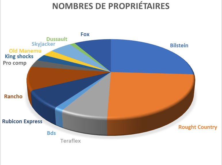 Bien que Rough Country soit le plus détesté (d’après les commentaires) il est quand même le plus populaire dû à son prix modique. Même si plusieurs propriétaires nous ont dit avoir beaucoup dépensé pour les réparer. Que pensez-vous des résultats ?