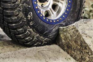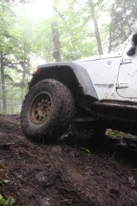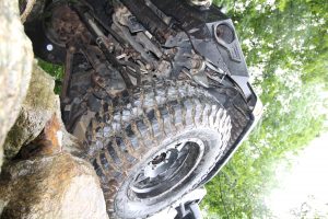 Nous avons donc mis le véhicule dans des situations beaucoup plus difficiles, et chaque fois le pneu nous a sorti du pétrin. Il ne nous était malheureusement pas permis de dégonfler les pneus en bas de 15lbs, les véhicules n’étant pas munis de beadlock. À grande vitesse, le pneu se libère très bien de la boue et permet aux crampons de bien creuser le terrain. Nous avons aussi travaillé fort à frotter les roches avec le côté des pneus afin de tester la résistance de ceux-ci.
