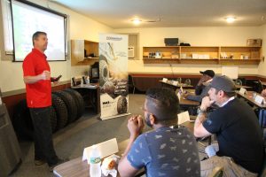 Donc le test était grossièrement divisé en quatre étapes… La première étant un exposé de Brandon, ingénieur qui a travaillé sur le nouveau pneu. Il nous a présenté les nouvelles améliorations dont je vous parlerai plus bas. La deuxième étape était une petite formation de 30 min sur la conduite hors-route. Pour moi et mon confrère, cette partie nous a parue un peu longue, mais pour les nouveaux dans le domaine, elle couvrait les points les plus importants selon nous.