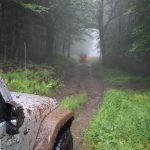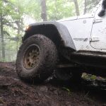 La pluie s’est mise à tomber dès le matin et de façon très intense. Dans le bassin de gens qui étaient présents pour les deux journées, mise a part les guides, nous étions en fait que moi et mon partenaire à avoir de l’expérience hors-route. Nous étions donc aussi les seuls à arborer un sourire à voir toute cette pluie. Je dois avouer que dans la vie de tous les jours, je ne suis pas un grand amateur de boue… Mais pour tester des pneus MUD-terrain, ça semblait des conditions parfaites.
