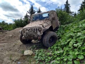 Sans surprise, la première modification que j’ai apportée à mon Jeep a été un ensemble de surélévation ainsi que de nouvelles roues pour pouvoir accueillir de nouveaux pneus. Des pneus de 35 pouces ont été mon choix. Avec toute cette excitation, je n’ai pas tardé à faire du hors-route, puisqu’après tout, «un Jeep ct’un Jeep», c’est fait pour ça… J’ai vite découvert que les nouveaux pneus allaient m’apporter vers d’autres modifications. La plus grande taille ainsi que la traction améliorée des pneus de type «MUD» furent un bon mélange pour mon baptême de feu du côté des bris. Ce ne fut malheureusement ou heureusement pas le dernier.