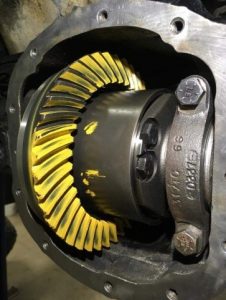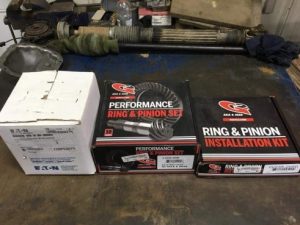 À ce moment, il faut dire que ma gestion de l’accélérateur ainsi que le choix de ligne était assez mauvais je l’avoue. De retour à la maison, je retombe à la case départ à faire des recherches sur comment résoudre mon problème. Un rapport dans les différentiels plus bas permettrait de mieux gérer la progression du véhicule permettant ainsi ce dernier de prendre sa traction tranquillement et laisser les pneus et la suspension faire le travail. Mon rapport de 3.73 ne m’aidait pas vraiment pour ce point puisque je ne pouvais laisser ce qu’on appelle «crawler» le Jeep dans les obstacles. En effet, j’arrivais avec beaucoup trop de vitesse. Qui dit vitesse dit risque de bris plus grand. Mon choix s’arrêta donc sur le ratio 4.56. De bons composants bien installés par un professionnel, j’ai vu la différence tout de suite.