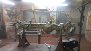Afin de limiter au maximum les torsions lors d’effort pour le carter d’essieu avant pour limiter les chances de bris, j’ai donc opté de profité de l’occasion que je rebâtissais le différentiel avant pour solidifier son ensemble ainsi que protéger certaines pièces vitales. Un ensemble de «truss», un ensemble de «gusset» supérieurs et inférieurs soudés ainsi que des plaques de protection pour les bras de suspension inférieurs fut un ajout logique pour moi à ce moment. Pendant la soudure des «gusset», la chaleur a complètement bousillé mes joints à rotules avant.