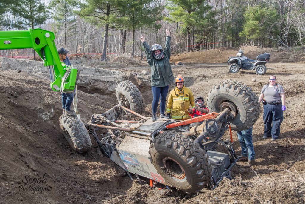 Deux compétiteurs ont foncé dans le même arbre sur le parcours leur causant des bris majeurs qui ont forcé leur abandon. Il s’agit de Daniel Giguère et Marie-Michèle Savard (Marie Mulisha). Il s’agissait de la première sortie pour Marie-Michèle avec son tout nouveau buggy Marie Mulisha 3.0.