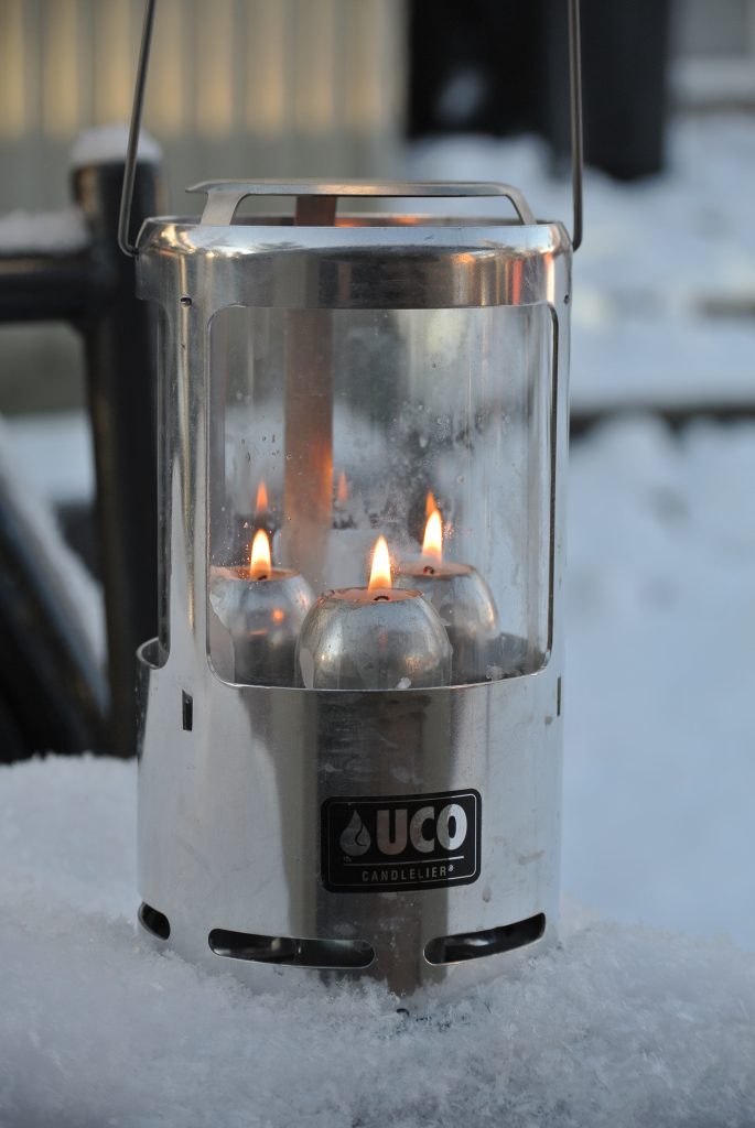 9- Lanterne à trois chandelles UCO : La solution idéale pour éclairer et réduire l’humidité dans votre tente lors des sorties automnales et printanière. La durée des chandelles est d’environ neuf heures et celles-ci sont montées sur un système de ressort qui garde l’intensité toujours égale tout en éliminant les débordements de cire liquide. Très sécuritaire et bien construite. Disponible dans les bonnes boutiques de plein-air. 50$