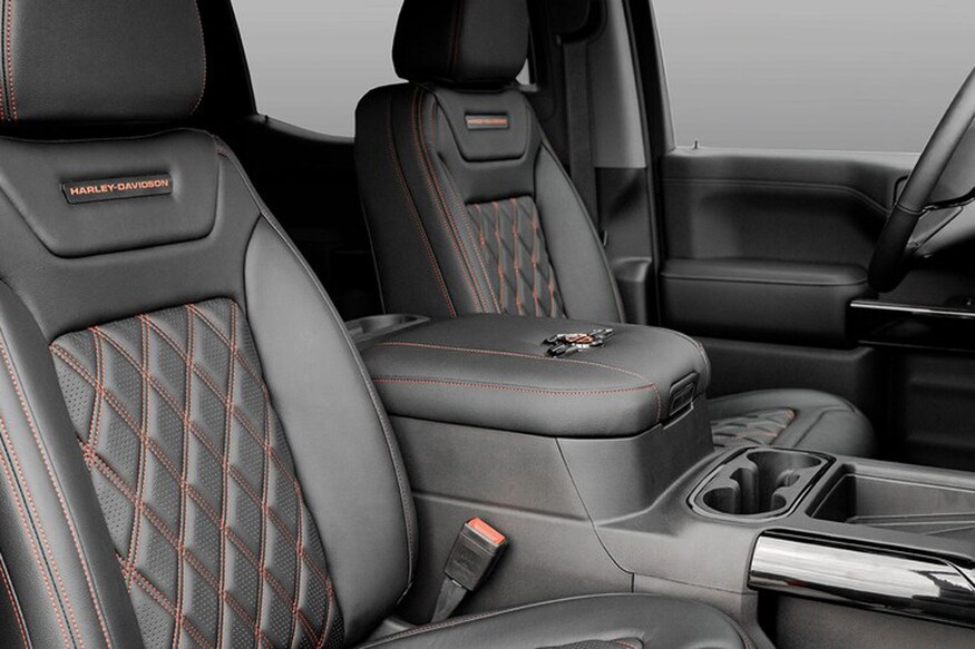 Les modèles sont également équipés d’une suspension BDS avec amortisseurs Fox améliorés, de pneus tout-terrain de 35 pouces, de marchepieds à déploiement électrique éclairés avec une garniture de bas de caisse intégrée unique, d’élargisseurs d’ailes personnalisés, de bouches d’aération fonctionnelles, d’un pare-chocs avant redessiné avec une barre lumineuse LED intégrée, d’une calandre Harley-Davidson personnalisée avec un logo en forme de barre et de bouclier, un pare-chocs arrière redessiné avec des orifices d’échappement personnalisés, une applique de hayon Harley-Davidson, u, un tapis de sol moquetté avec le logo Harley-Davidson, et des tapis de sol Harley-Davidson et des seuils de porte, un tableau de bord et des garnitures de volant.