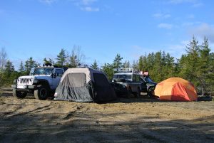 Les feux fumaient encore à travers l’humidité du matin quand j’ai fait la tournée de la trentaine de véhicules sur le site. La variété des véhicules et des installations est un des aspects des plus plaisants en Overland car chaque passionné adapte son matériel selon ses besoins. L’arrivée de modèles de camionnettes compactes orientées vers le hors route à clairement changé le portrait standard que nous avions depuis quelques années. Que ce soit les Chevrolet Colorado ZR2 ou GMC Canyon avec motorisation diesel ou encore les Nissan Frontier, les Toyota ne sont plus seuls dans la catégorie. De plus, les roulottes compactes à capacité hors-route font de plus en plus d’adeptes avec leurs cuisines extérieures et auvents intégrés. Les tentes de toit sont toujours aussi populaires et les remorques militaires de type M101 se font lentement remplacer par de nouveaux modèles plus légers et de conception plus moderne.