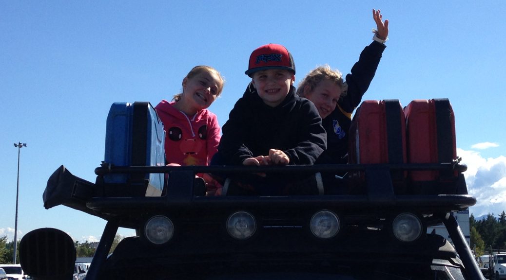 Voilà qu’un an presque jour pour jour, nous sommes fins prêts à prendre la route en direction de la Colombie-Britannique. Disposant de seulement trois semaines avant le retour en classe, nous avons décidé que les enfants et ma conjointe reviendraient à la maison en avion alors que je retournerais par la route, les épargnants du même coup des 5500 kilomètres du retour. Bien que la préparation du véhicule et du matériel ait été exhaustive, notre itinéraire lui, laissait place à beaucoup de latitude car nous n’avions fait aucune réservation sauf pour les billets de retour.  Nous étions fébriles le jour du départ car ce voyage, nous l’avions rêvé et imaginé bien longtemps avant d’avoir des enfants.