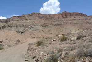 Tout s’était bien déroulé jusqu’à présent et la région du Grand Canyon nous en mettait plein la vue depuis quelques jours. Nous avions déjà fait un peu de hors-route en Arizona sur le North Rim et on se sentait d’attaque pour notre tracé de 120 kilos. La route semblait de bonne qualité malgré quelques sections de planche à laver qui nous ont forcés à faire un petit arrêt pour ajuster la pression des pneus. Un panneau sur le bord de la route identifiait une plage dans le coin de Crosby Canyon quelques 20 kilomètres plus loin. Il était encore tôt et nous avons décidé d’aller explorer les berges du lac Powell. La route avait fait place à un sentier au travers des rochers qui, à son tour, se transformait en dunes de sable avec plus ou moins d’indications. Après quelque fausses directions, nous avons finalement réussis à se rendre sur le bord du lac pour une courte pause avant de reprendre la direction de notre objectif principal.