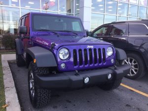 Ma commande était claire: je voulais un Jeep JKU Rubicon 2018, juste avant que les modèles JLU arrivent. Il devait être automatique, « gearé » 4:10, 5 pneus KO2, et surtout, de couleur MAUVE! À la base, on en convient, la commande était assez simple. J’ai donc ciblé des concessionnaires près de chez moi ainsi qu’un qui fait affaire avec le club près de chez moi.