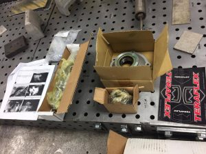 populaire!). Cette maquette nous a permis de découper notre aluminium avec les bonnes dimensions et de savoir où nous devions plier notre panneau. Pour le pliage, nous avons affaibli la ligne où on voulait plier avec un »grinder » et nous l’avons plié dans l’étau par la suite.