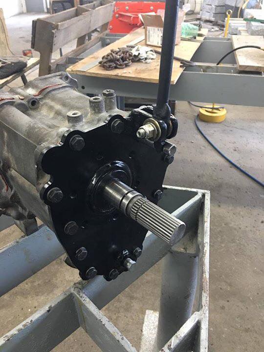 En supprimant la partie destinée à envoyer le pouvoir vers l’avant du premier transfert case, celui-ci devient en quelque sorte une boîte à vitesse un peu comme une transmission, mais avec seulement 2 fonctions (Hign/low), ensuite, en ajoutant un deuxième transfert case qui sera entraîné par le premier, ce dernier va à son tour entraîner l’arbre de transmission avant et arrière comme d’origine avec la fonctionnalité High/low.